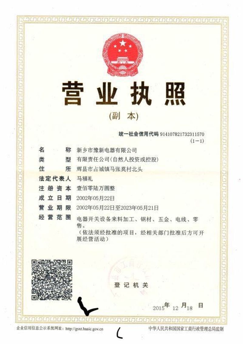 已通過(guò)ISO9000國(guó)際質(zhì)量管理體系認(rèn)證;產(chǎn)品注冊(cè)‘豫新’牌商標(biāo),低壓動(dòng)力控制柜通過(guò)國(guó)家強(qiáng)制性CCC認(rèn)證,低壓降壓?jiǎn)?dòng)柜曾經(jīng)天津低壓電器研究所、蘇州電器研究所有限公司檢測(cè)合格